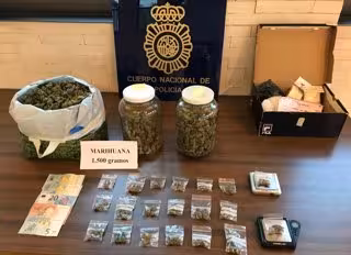 En el momento de la detención y tras el oportuno registro domiciliario efectuado, se le intervino la cantidad de 1.500 gramos de marihuana en cogollos, dinero en efectivo, un vehículo, dos balanzas de precisión, un teléfono móvil y otros efectos relacionados con la manipulación de dichas sustancias.
