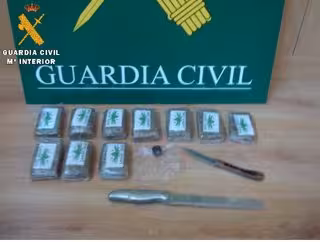 Según fuentes del Instituto Armado, la detención tuvo lugar cuando agentes del cuerpo identificaron al conductor de un turismo en la citada localidad y encontraron en los asientos traseros del mismo, escondidos entre varias prendas de ropa, dos paquetes envueltos con cinta transparente que contenían cinco pastillas de hachís de un kilo.
