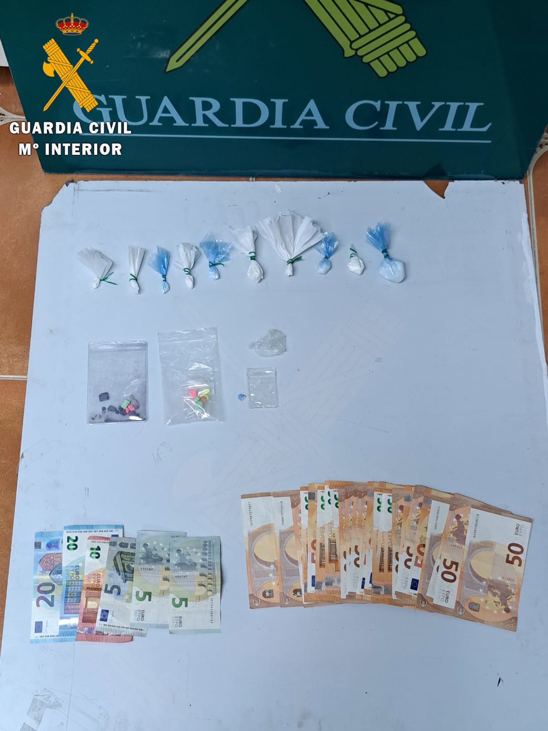 La Guardia Civil de Segovia ha detenido a dos hombres de 38 y 46 años, vecinos de Murcia, como presuntos autores de un delito de tráfico de drogas, tras ser interceptados durante un dispositivo realizado en San Rafael (El Espinar) con éxtasis, speed y ketamina, además de dinero en efectivo.