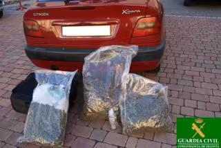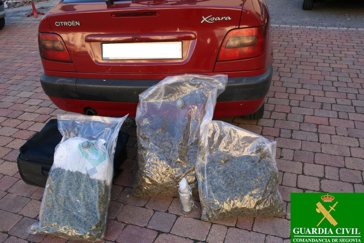 Tres hombres de nacionalidad francesa fueron detenidos en la N-1, en Fresno de la Fuente (Segovia), cuando viajaban en un turismo con 5,5 kilogramos de marihuana guardados en tres maletas.