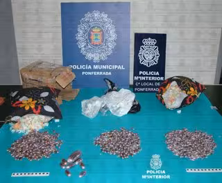Fruto de las investigaciones llevadas a cabo por la Policía Nacional, en colaboración con la Policía Local de Ponferrada, se les intervino el pasado martes día 11 un total de 3,350 kilogramos de hachís repartidos en 650 'bellotas' de pequeño tamaño, concretamente, de unos cinco gramos cada una; siete de tamaño mediano y una de tamaño grande, así como el vehículo que usaban para viajar a Marruecos.