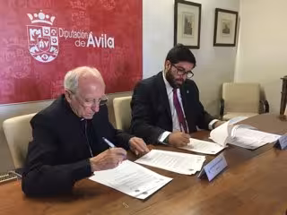 El presidente de la Diputación, Jesús Manuel Sánchez Cabrera, y el obispo de Ávila, Jesús García Burillo, han rubricado el convenio correspondiente a la anualidad 2017, que destinará un total de 120.000 euros, cofinanciado a partes iguales entre ambas entidades, a esta actuación.