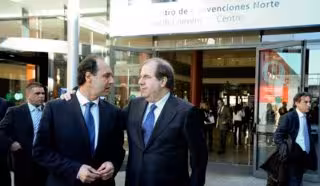 El presidente del PP cántabro, Ignacio Diego; y el presidente de la Junta de Castilla y León, el 'popular' Juan Vicente Herrera, han mantenido un encuentro para analizar estrategias de colaboración, en el marco de la feria turística FITUR.