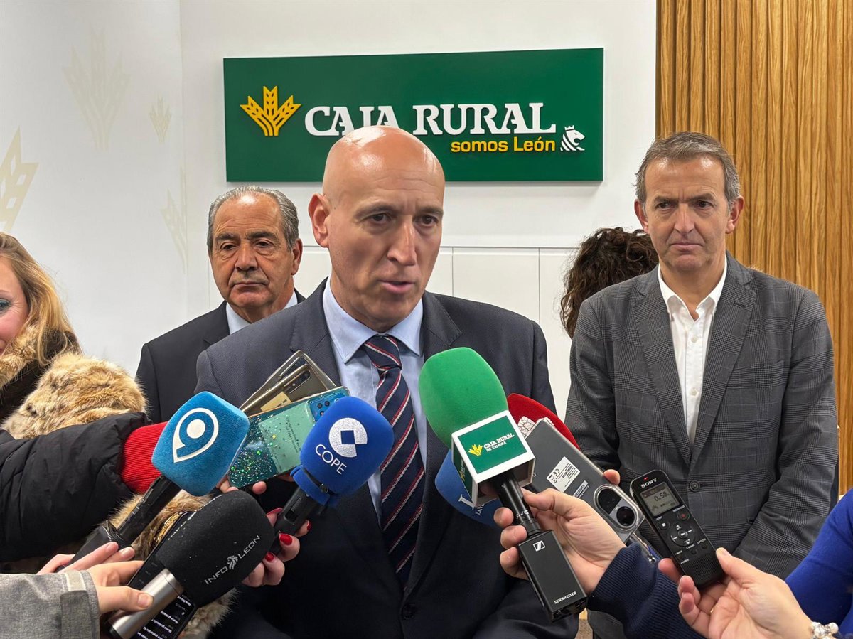 El alcalde de León durante la apertura de una nueva oficina de Caja Rural en León. - EUROPA PRESS