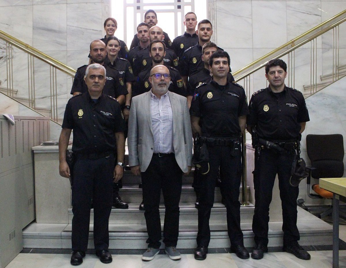 El subdelegado del Gobierno en Soria, Miguel Latorre, ha recibido este jueves 18 de julio en la Subdelegación del Gobierno a los diez agentes en prácticas que completan su etapa de agentes en prácticas mientras que el inspector jefe, Emilio Moya, ha acompañado a los alumnos durante su presentación.