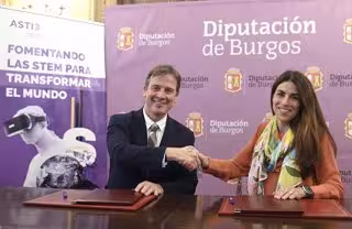 El presidente de la Diputación de Burgos, Borja Suárez, ha renovado este jueves el convenio de colaboración con la Fundación ASTI para impulsar una nueva edición de Ruralbotic, un programa que desarrolla el talento STEM en las escuelas rurales de la provincia.