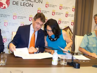El presidente de la Diputación de León, Juan Martínez Majo, y la subdelegada del Gobierno en León, Teresa Mata, han suscrito este martes un convenio de colaboración mediante el que la Institución provincial subvencionará con 130.000 euros la rehabilitación de seis casas cuartel de la Guardia Civil.