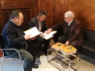 El presidente de la Diputación de León, Juan Martínez Majo, ha recibido este martes al historiador e investigador leonés Joaquín Cuevas Aller quien le ha comunicado la donación a la institución provincial de 200 colecciones de su obra 'la Historia del Sello Postal Español'.