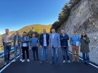 El vicepresidente primero de la Diputación de León y responsable del área de Infraestructuras, Roberto Aller (cuarto por la derecha), en la LE-6226, donde se han llevado a cabo las obras. - DIPUTACIÓN DE LEÓN