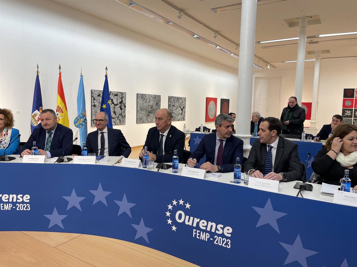 El presidente, que ha realizado estas declaraciones tras participar en la reunión del Pleno de la Comisión de Diputaciones de la Federación Española de Municipios y Provincias (FEMP) en Ourense, se ha mostrado de acuerdo con "la necesidad de simplificar organizativamente la carga burocrática en materias administrativas y de contratación".