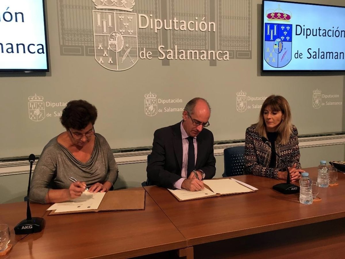 Esta inversión será posible una vez el presidente de la Diputación Provincial, Javier Iglesias, ha firmado el convenio de colaboración con la presidenta de la asociación, Marcelina Ledesma, con el propósito de sufragar los gastos de transporte de los salmantinos que acuden a las instalaciones.
