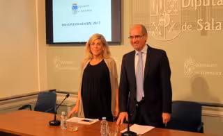 El presidente de la Diputación de Salamanca, Javier Iglesias, y la delegada del área de Economía y Hacienda, Chabela de la Torre, han presentado el anteproyecto de presupuestos para 2017, que ascenderá a 101,9 millones de euros.