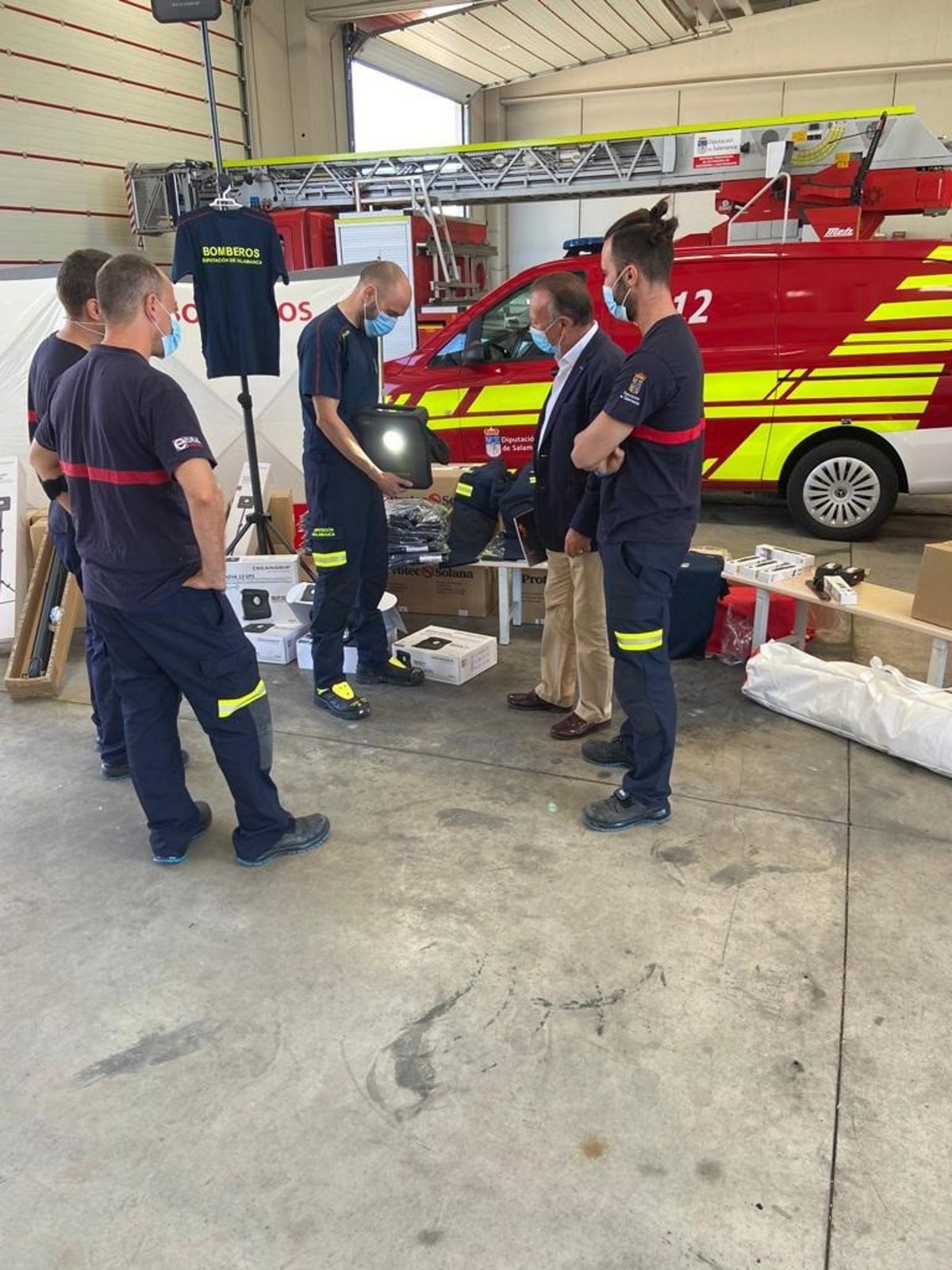 Entre otras adquisiciones están cuatro pantallas de ocultación para dar privacidad a las intervenciones más sensibles; una carpa que se utiliza como puesto de mando y de control; cinco focos leds de gran potencia; y vestuario para ofrecer uniformes homogeneizados al personal del Servicio de Prevención y Extinción de Incendios de Salamanca.