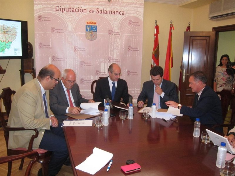 El contrato de adjudicación se ha suscrito este viernes en el Palacio de la Salina con la presencia del presidente de la Diputación Provincial, Javier Iglesias, y de Óscar Rodríguez y Roberto de Bartolomé, en representación de PAS y Gecocsa, respectivamente.