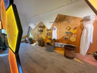 Esta sala se divide en varios espacios temáticos, donde los visitantes pueden explorar la historia de la apicultura a través de paneles explicativos, material que utilizan los apicultores, vinilos ilustrativos y un espacio interactivo con realidad virtual que simula el proceso de elaboración de la miel.
