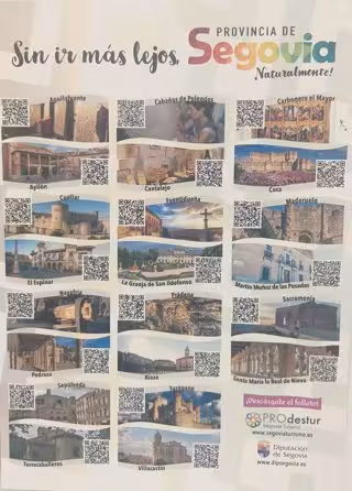 Entre la oferta informativa, figura la relativa a pueblos como Aguilafuente, Carbonero el Mayor, el Real Sitio de San Ildefonso, El Espinar, Maderuelo, Prádena, Riaza, Turégano o Villacastín, hasta sumar un total de 22 localidades, mientras que por lo que se refiere al código cuyo contenido dirige a los folletos temáticos, los turistas podrán encontrar propuestas de deporte y aventura, turismo de eventos, Parques Naturales y Nacional, turismo familiar, turismo enológico, turismo arqueológico, turismo gastronómico, encierros campestres, observación de la naturaleza, turismo religioso o patrimonio industrial, entre otra veintena de ejemplos.
