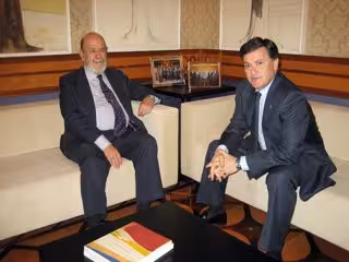 El presidente de la Diputación, Francisco Vázquez, ha recibido este martes en su despacho a una delegación de la Fundación, encabezada por Gil Robles, con el fin de conocer la labor que esta organización realiza con diferentes administraciones públicas, centrados en la administración digital o el programa 'Eurípides', de implantación de televisiones por Internet.
