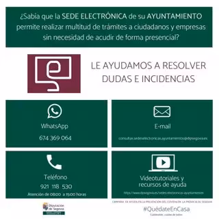 De esta manera, ha habilitado un número de un número de teléfono, 921 118 530), una dirección de mail, onsultas.sedeselectronicas.ayuntamientos@dipsegovia.es, un