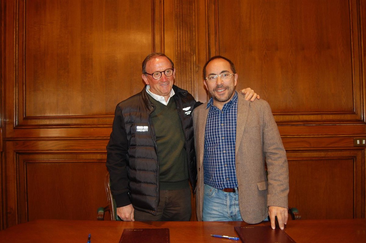 El presidente de la Diputación Provincial, Luis Rey, y el presidente del CD Numancia, Francisco Rubio, han suscrito este lunes el convenio de colaboración entre ambas instituciones que tiene por objeto subvencionar la participación del CD Numancia en las competiciones de carácter nacional en las que participa y que fija una aportación de la institución provincial de 90.000 euros.