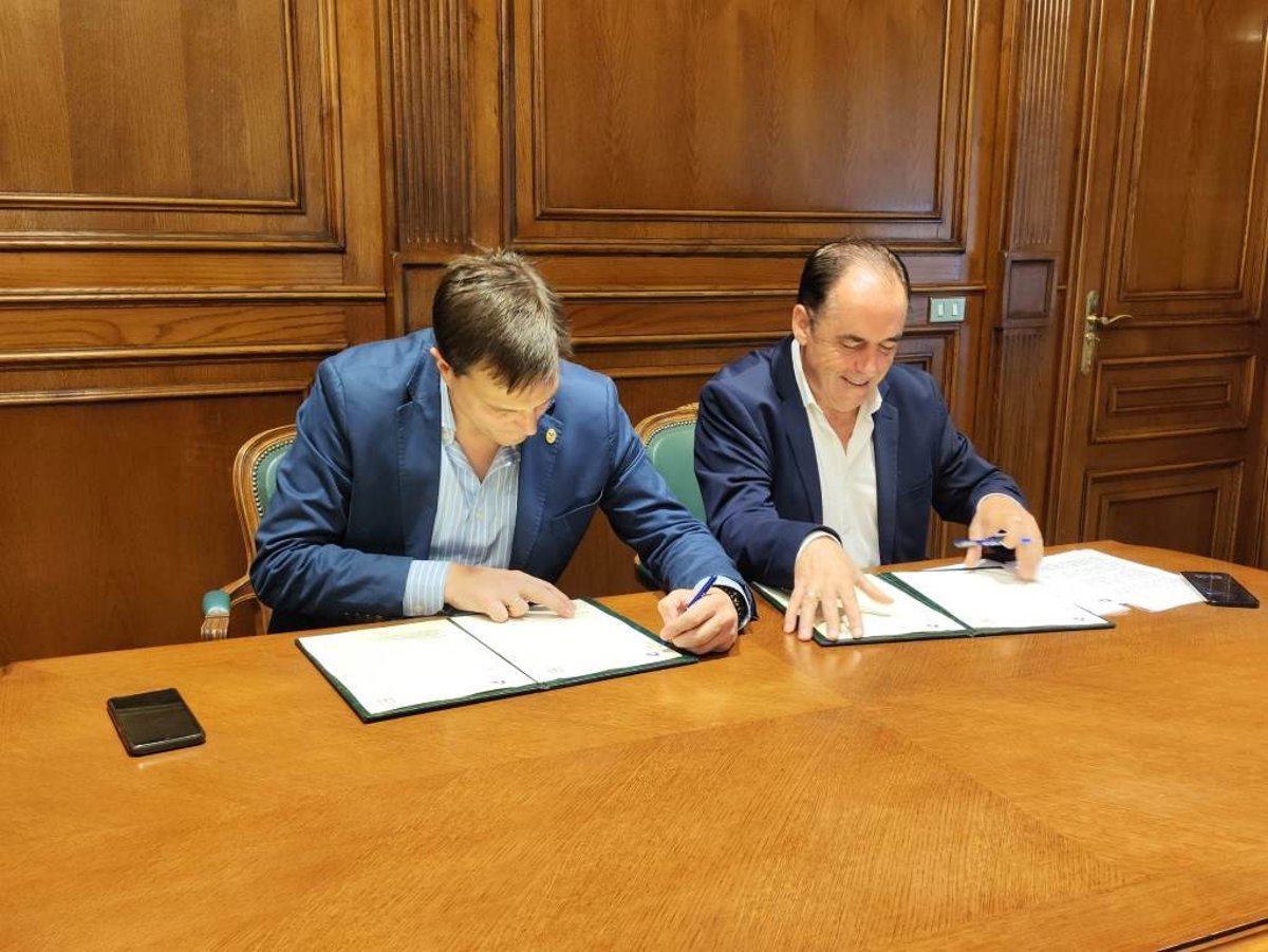 El presidente de la Diputación de Soria, Benito Serrano, y el presidente del Colegio Oficial de Farmacéuticos de Soria, Javier Alonso, han firmado el convenio de colaboración mediante el cual la Institución aporta 24.000 euros.