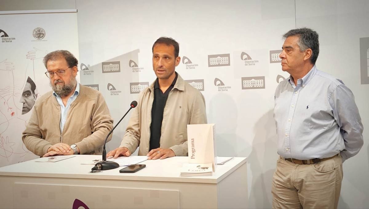 De izda a dcha, Jesús Rubio, Enrique Rubio y Emilio Ruiz detallan el congreso dedicado a Lorca en Soria. - EUROPA PRESS