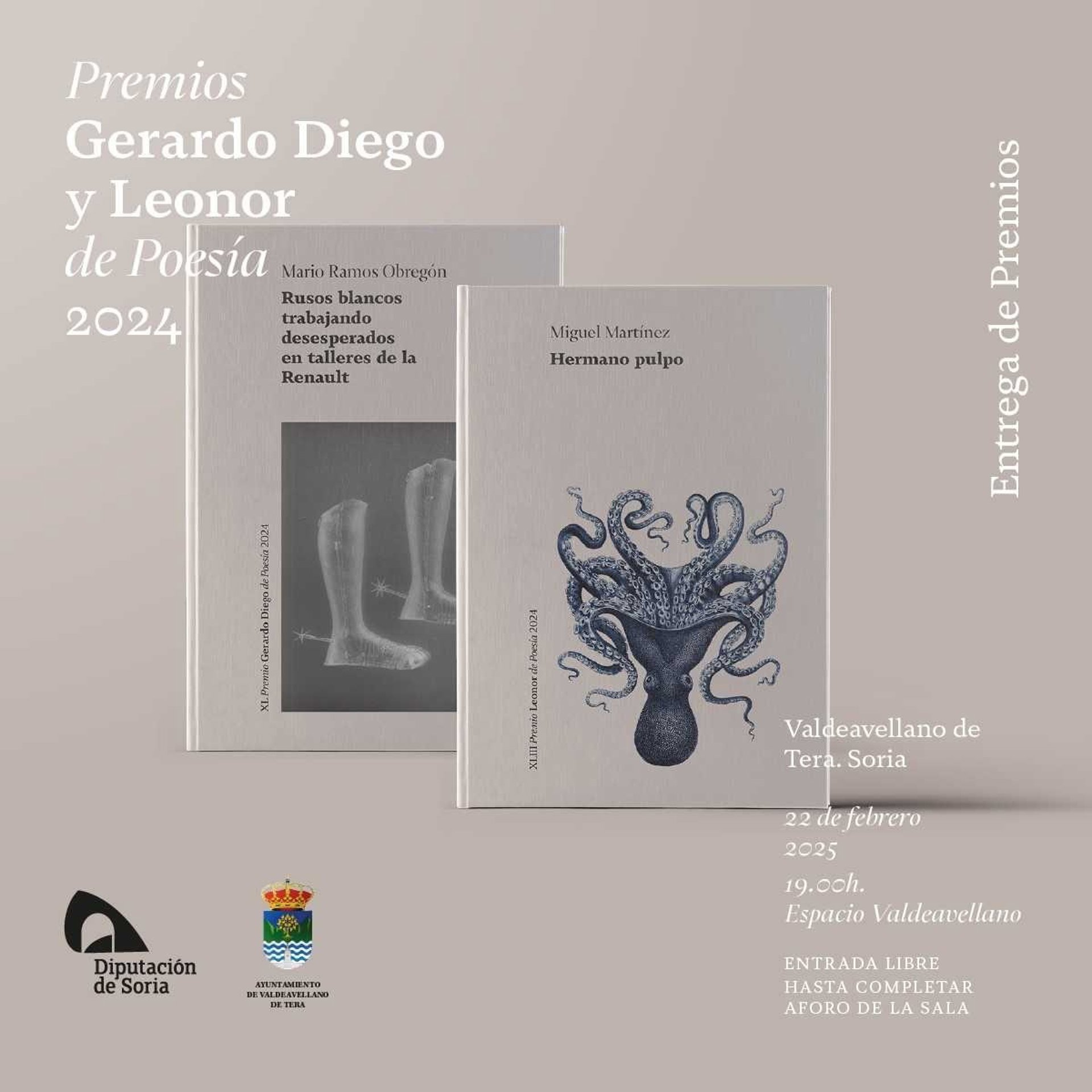 La Diputación Provincial de Soria entregará este sábado 22 de febrero los premios de poesía Leonor y Gerardo Diego, en un acto abierto al público que comenzará a las 19.00 horas en el salón del Espacio Valdeavellano.