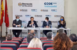 La Diputación de Valladolid y la patronal CEOE han celebrado este jueves un encuentro empresarial en Matapozuelos en el que han profundizado en las oportunidades que ofrecen los Fondos Europeos para acelerar los procesos de transformación digital de las empresas y mejorar su eficiencia, para contribuir a que las empresas puedan mantener e incrementar su actividad contribuyendo de esta manera al desarrollo de la provincia.