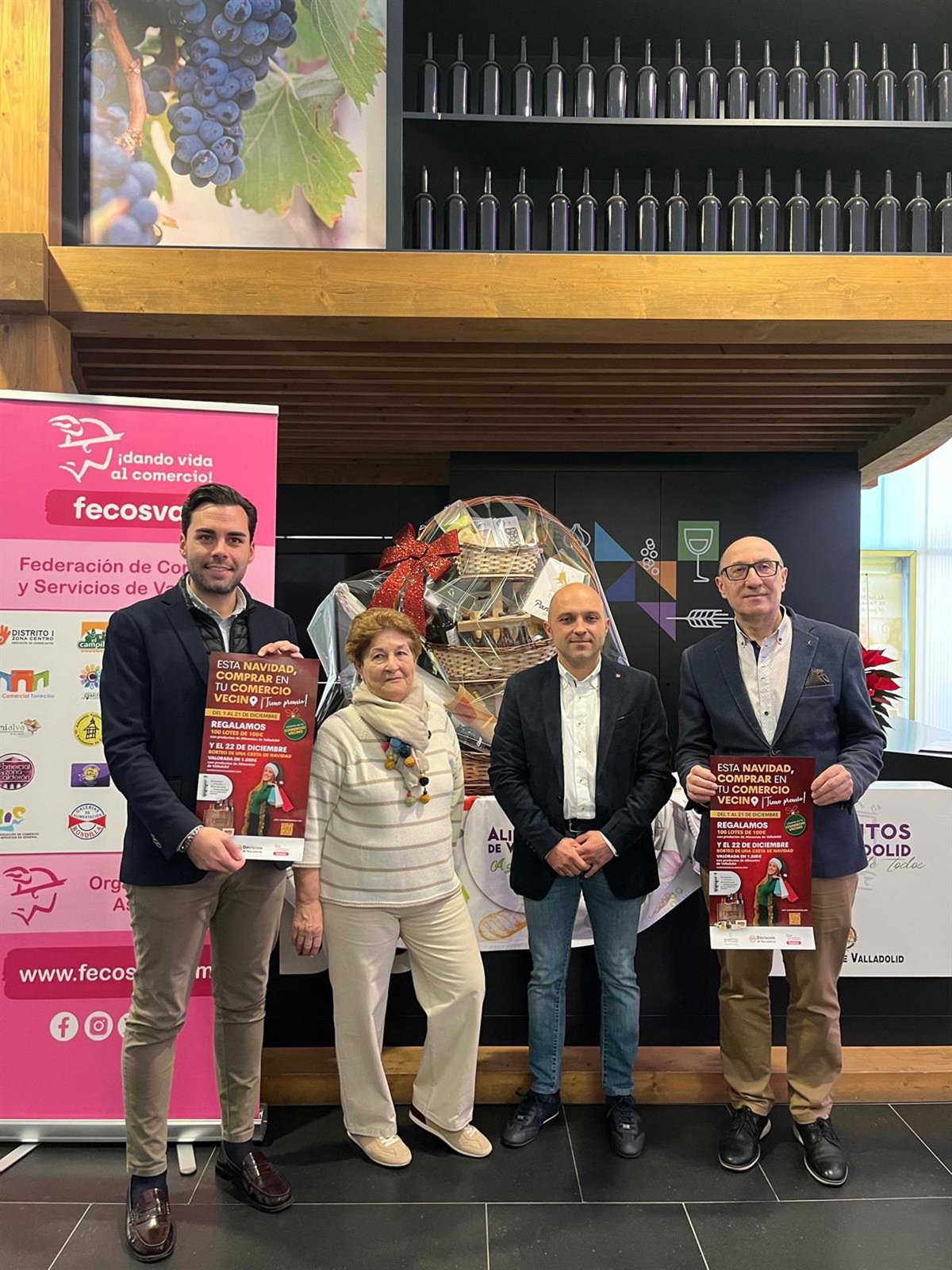 La Diputación y la Federación de Comercio y Servicios de Valladolid (Fecosva) han entregado la cesta de Navidad de productos de Alimentos de Valladolid, valorada en 1.500 euros, correspondiente a la campaña 'Esta Navidad comprar en tu comercio vecino tiene premio'.