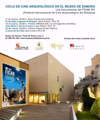 El Museo de Zamora organiza, por cuarto año consecutivo, con la colaboración del Museo Romano Oiasso de Irún, el Ciclo de Cine Arqueológico que proyectará los tres documentales premiados en la decimocuarta edición del Festival Internacional de Cine Arqueológico del Bidasoa (FICAB), celebrado el pasado mes de noviembre.