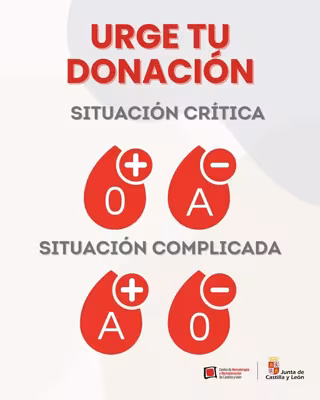"Si eres donante de uno de estos grupos, te necesitamos", urge el Centro de Hemoterapia y Hemodonación a través de un mensaje publicado en las redes sociales del que se hace eco también el Servicio de Emergencias de Castilla y León 112.