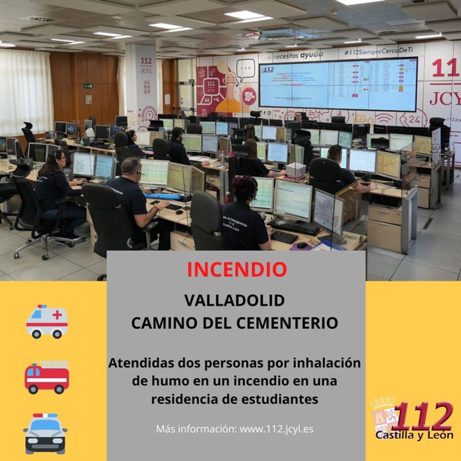 El 1-1-2 dio aviso de este incendio a los Bomberos y la Policía Municipal de Valladolid, al Cuerpo Nacional de Policía y a Emergencias Sanitarias - Sacyl, que envió en preventivo una UVI móvil y dos ambulancias de soporte vital básico. Se informó asimismo al centro coordinador de emergencias de la Junta de Castilla y León, ante la posibilidad de tener que apoyar en el albergue de las personas desalojadas.