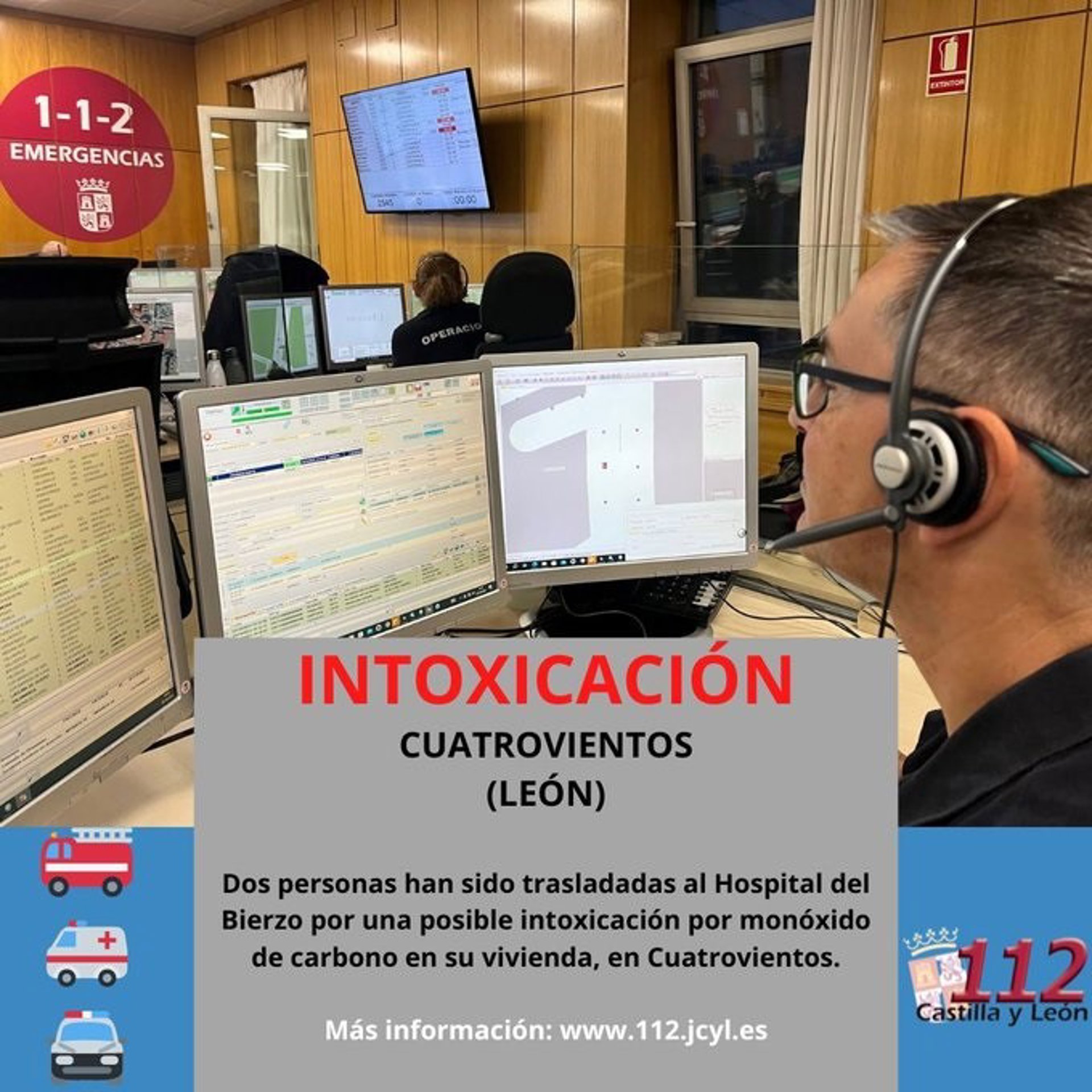 Dos personas de 81 y 95 años han resultado afectadas por intoxicación de monóxido de carbono en un incidente ocurrido en una vivienda de la localidad leonesa de Cuatrovientos, según ha informado el Servicio de Emergencias de Castilla y León 112.