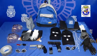 En esa intervención, los agentes les requisaron una pistola del calibre nueve milímetros Parabellum, un revólver detonador con cinco cartuchos en su tambor, un teléfono móvil, un equipo inhibidor de frecuencia, dos mochilas con pasamontañas, distintos tipos de guantes, gorras, gafas de sol y otros efectos, una radiografía, cinta americana y trece bridas de sujeción.