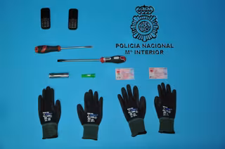 Durante la huida, los dos sujetos fueron desprendiéndose del material que portaban, arrojándolo a la vía pública, que fue recuperado posteriormente por los agentes: destornilladores grandes, linternas, guantes, teléfonos móviles y 295 euros en efectivo.