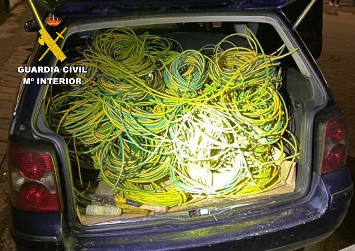 En esta ocasión sí llamó la atención de los agentes la importante cantidad de cableado eléctrico que transportaban en el maletero, así como varias herramientas manuales, material de cobre del que no supieron dar respuesta coherente sobre su lícito origen y titularidad, por lo que fue intervenido.