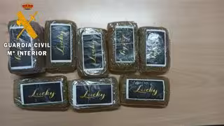 Como consecuencia de la actitud de los citados ocupantes, los agentes procedieron a la inspección de las pertenencias y localizaron en las de dos de ellos un total de ocho tabletas de hachís con un peso aproximado de 800 gramos.