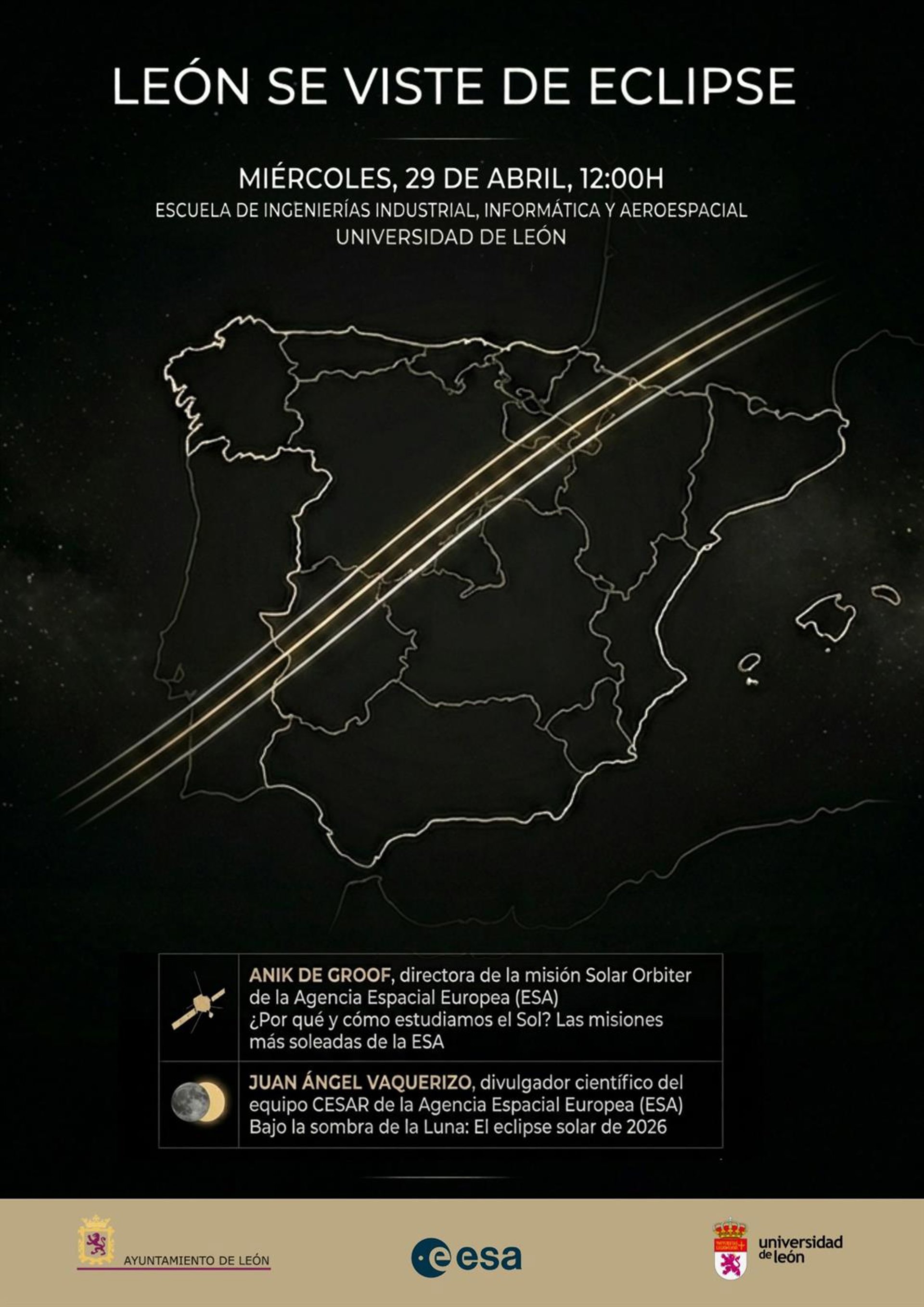 La jornada contará además con la participación de miembros del Grado en Ingeniería Aeroespacial de la ULE y marca el inicio de las acciones de la ESA en León como antesala del evento del 12 de agosto, en el que la ciudad se convertirá en punto de encuentro ciudadano en España para la observación del eclipse.