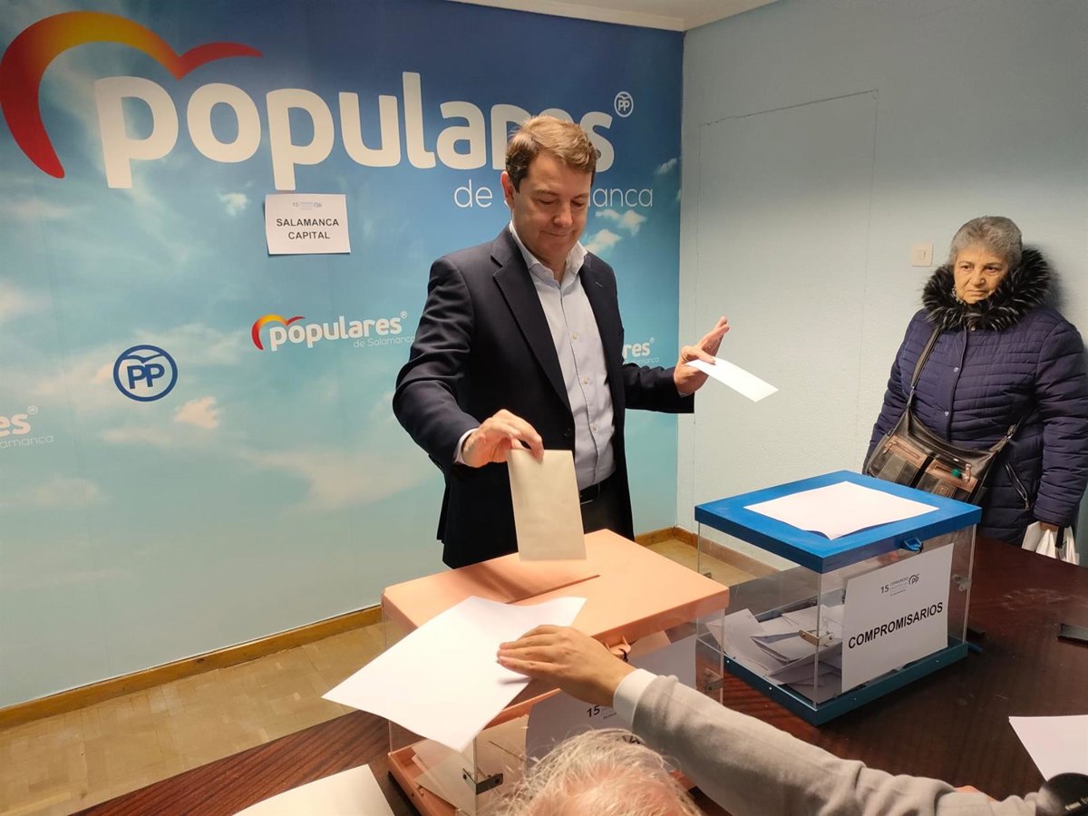 Mañueco vota para elegir al que seráel candidato a presidir el PP de Salamanca. - EUROPA PRESS