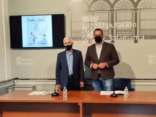 Durante el acto público para dar a conocer su nuevo trabajo, en el Palacio de La Salina, ha estado acompañado por el delegado del área de Cultura de la Diputación de Salamanca, David Mingo, en representación de la institución que ha colaborado para la puesta en marcha de este proyecto.