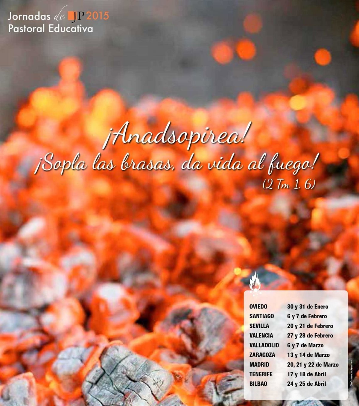 En definitiva, y siguiendo el lema de las Jornadas de Pastoral, el encuentro invitará a los asistentes a formar parte del gremio de los "anadsopireadores", a recobrar el aliento para soplar "sobre el fuego que Dios te ha dado".