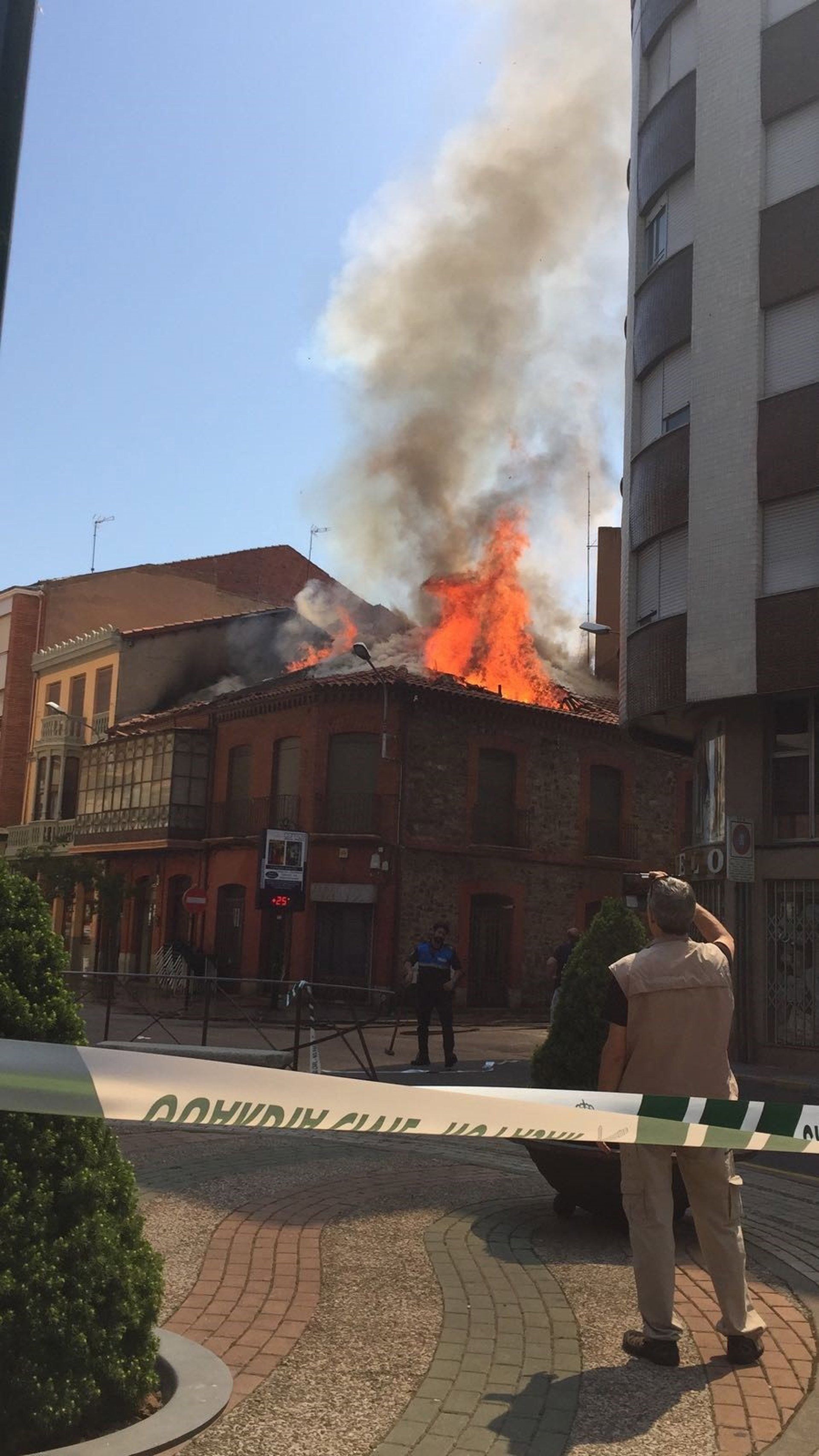 La explosión y posterior incendio del edificio de La Bañeza (León) ha obligado a desalojar a viviendas colindantes ya que las llamas podrían afectar sus estructuras.