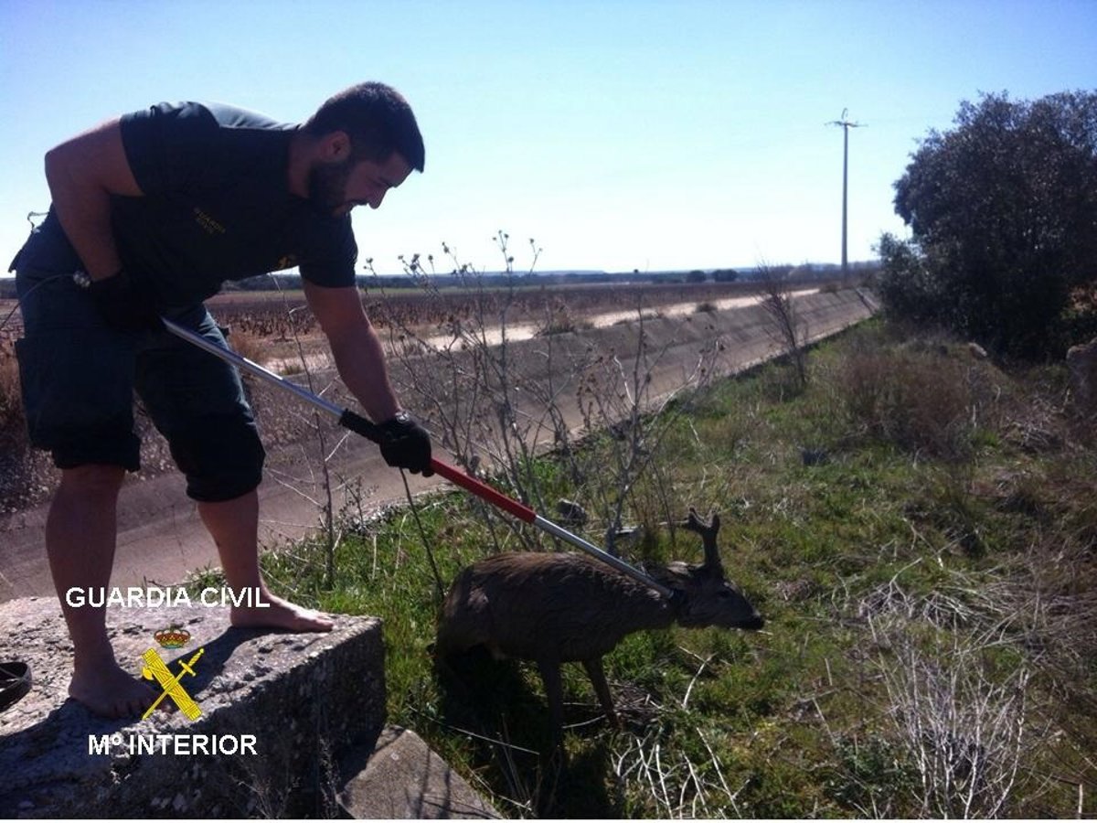 Agentes pertenecientes a la Patrulla de Seprona de Santa María del Campo (Burgos) lograron rescatar a un corzo al que hallaron dentro de un canal en el término de Fuentecén y que corría el peligro de ahogarse, según informan fuentes de la Subdelegación del Gobierno.