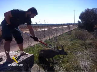 Ante ello, los agentes, tras desprenderse de sus uniformes, se introdujeron en el canal a través de una cuerda fijada en una trampilla de riego y consiguieron así coger al corzo del cuello con una pértiga-lazo y trasladarlo a una zona menos profunda, para posteriormente sacarle del canal y dejarle en libertad sin daños aparentes.