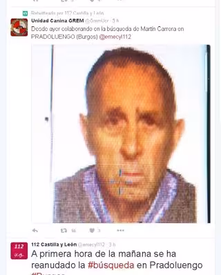 Efectivos y voluntarios trabajan en la búsqueda de un hombre desaparecido en la localidad burgalesa de Pradoluengo, según la información difundida por el Servicio de Emergencias Castilla y León 112 a través de su cuenta de Twitter.