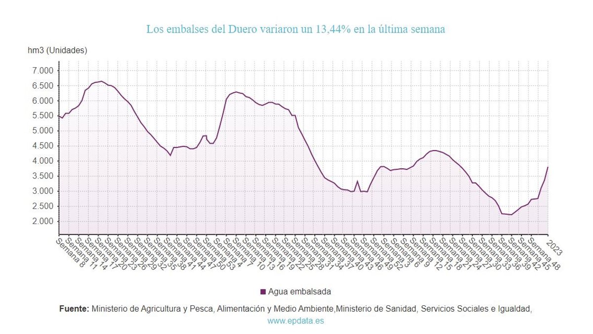 Evolución de la reserva hidráulica en la cuenca del Duero. - EP DATA