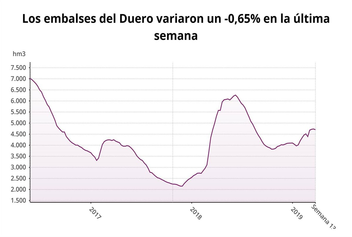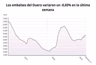 Con esos 4.703 hectómetros cúbicos almacenados y el 62,6 por ciento de la capacidad total están ligeramente por debajo del dato de almacenamiento de agua de la misma semana del año 2018 (4.982 hectómetros cúbicos) y se sitúan una semana más por debajo de la media de los últimos diez años (5.789 hectómetros cúbicos).