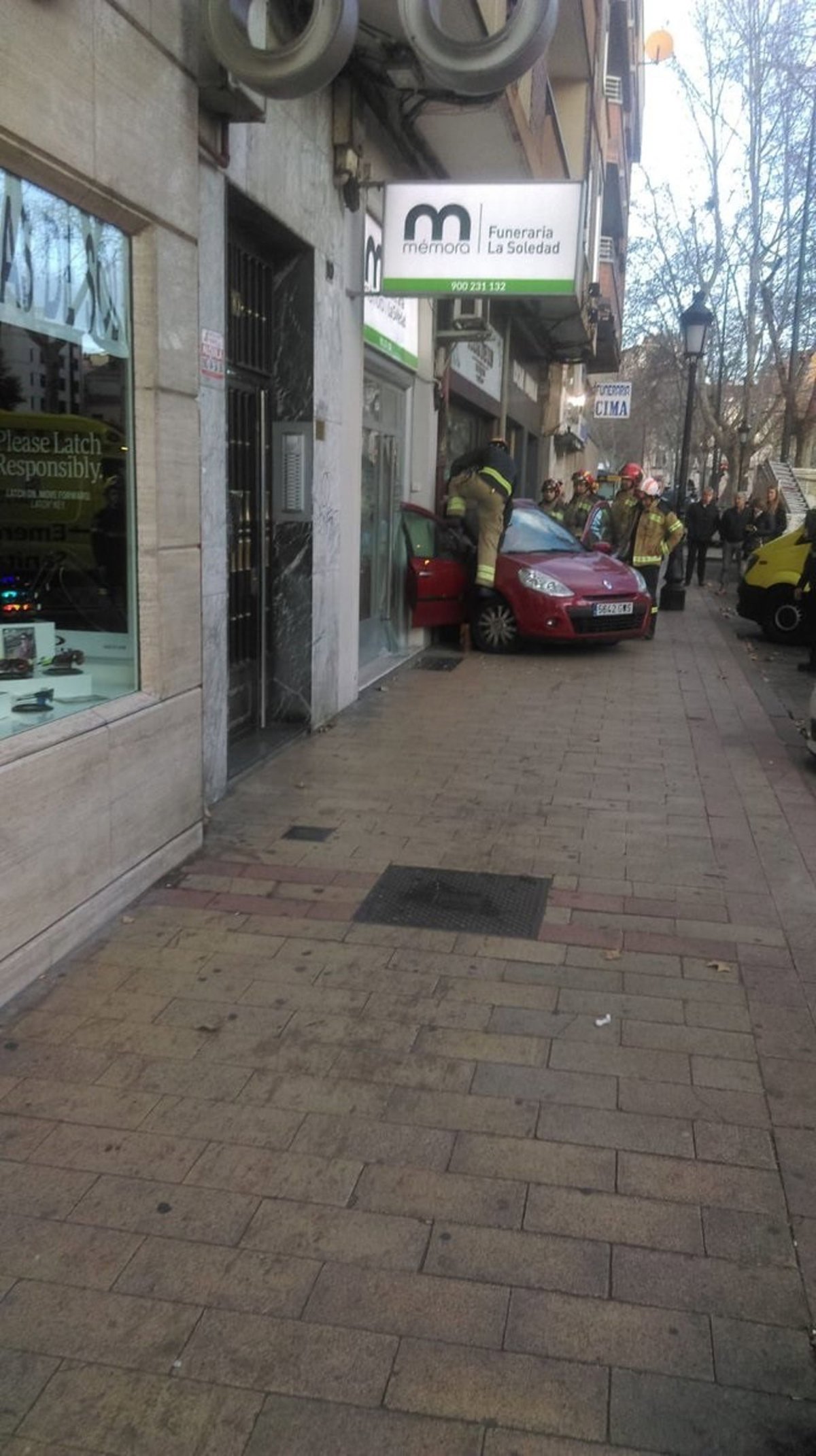 Los bomberos de Valladolid trabajan en las tareas de excarcelación del ocupante de un turismo que se ha empotrado en un comercio de la capital vallisoletana, según informa la Policía Municipal en su cuenta de Twitter.