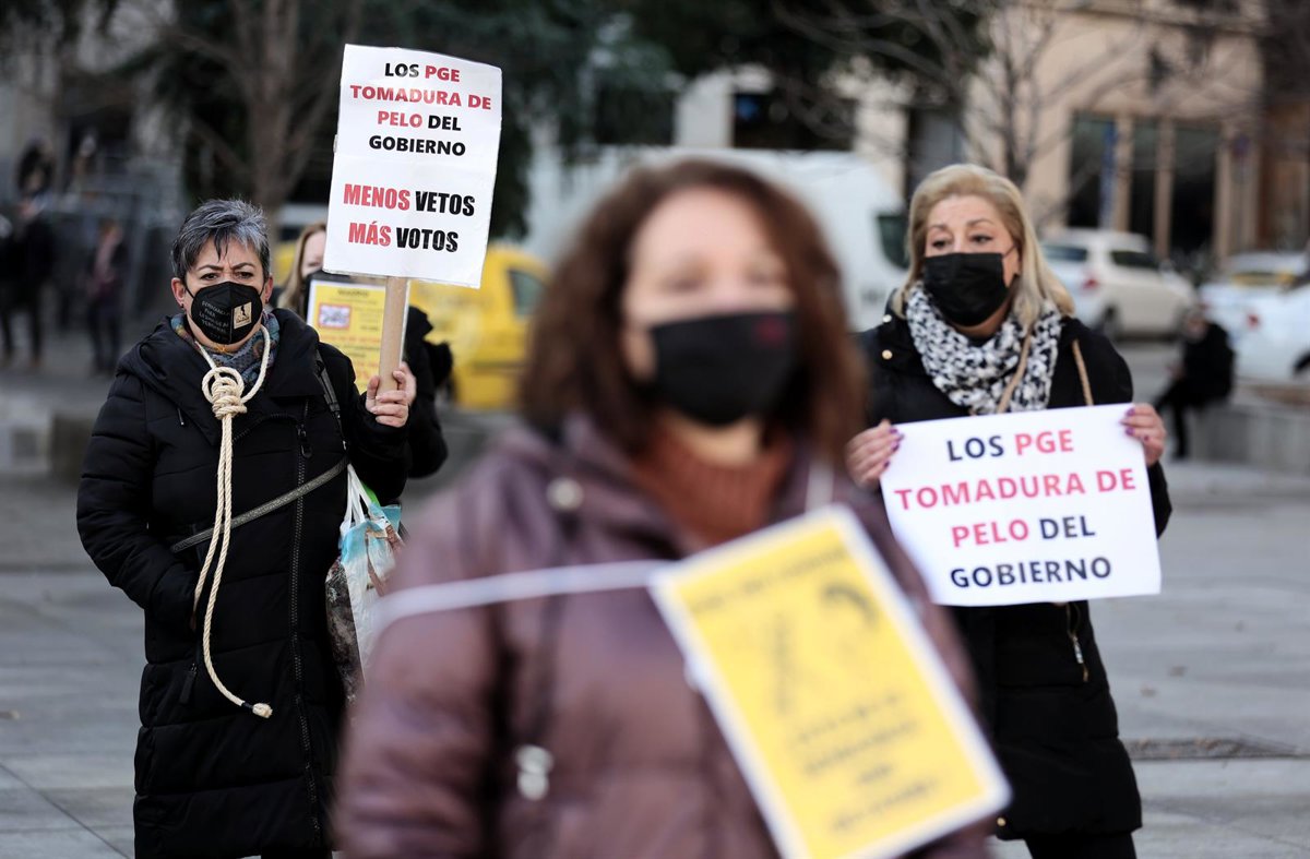 Varias profesionales de la peluquería y estética se concentran con pancartas frente al Congreso de los Diputados. - Eduardo Parra - Europa Press