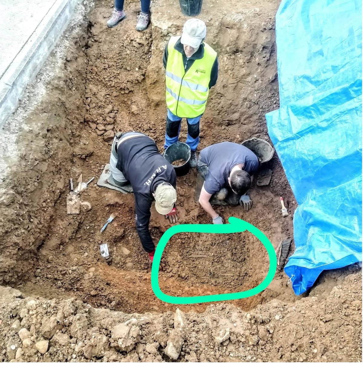 Después de perforar unas profundas placas de cemento e iniciar la extracción de tierra aparecieron dos cuerpos "con serios indicios de pertenecer a las personas asesinadas, "ya que estaban entrecruzados, uno de ellos ladeado, algo que evidencia que se trata de un enterramiento", según ha explicado la Asociación.