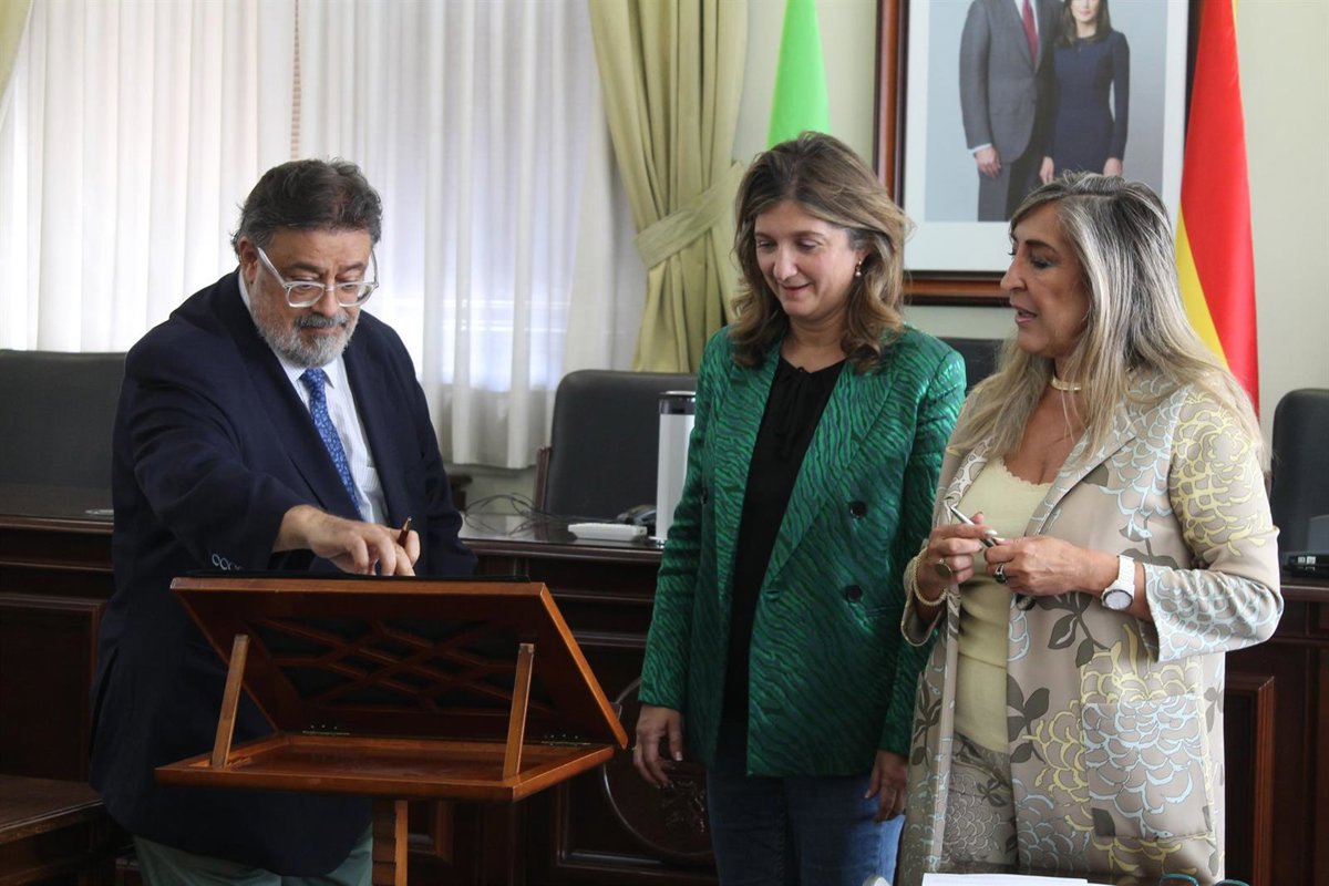 Enrique López (izquierda) toma posesión como director del Instituto de la Viña y el Vino de la ULE, acompañado por la rectora de la ULE, Nuria González (centro) y secretaria general de la ULE (derecha), Pilar Gutiérrez. - ULE